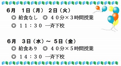 ※6月 1日(月)から全校児童で通常の学校生活を再開させる予定です。