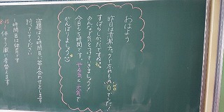 教室では、いつものように担任の温かいメッセージが子どもたちを迎え、下足箱の靴の整頓もいつものようにきちんとできています。トイレのスリッパもしっかり揃っており、いつもの美和東小の子どもたちだなと感じながら校内を回っています。