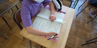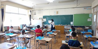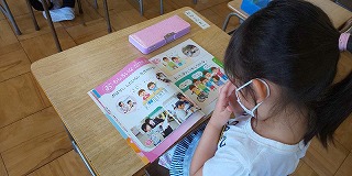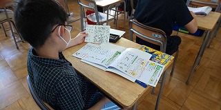 1回目の登校日に、手洗いの励行やソーシャルディスタンスの確保等、感染症を皆で防ぐための指導をしましたので、この日は、休業期間の課題について解説をしたり漢字ドリル等の使い方を説明したりと、学校再開に向けての準備を進めました。