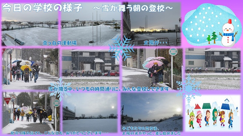 今日の学校の様子(雪舞う朝の登校の様子)