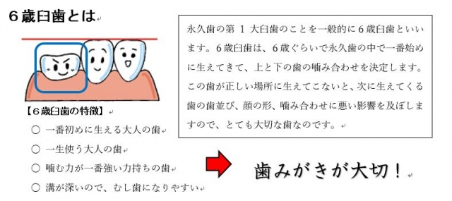 歯科指導〈1年生〉 ~6歳臼歯を大切に!~