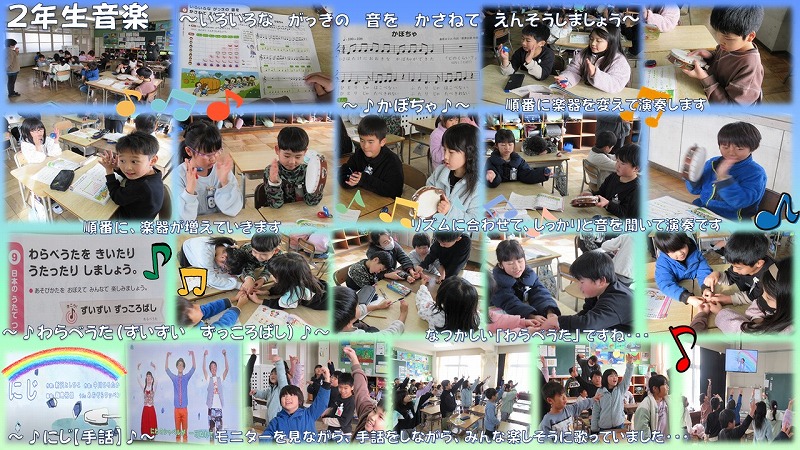 2年生音楽(♪かぼちゃ♪・♪ずいずいずっころばし♪・♪にじ♪)