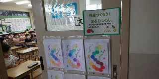 校内各所には、図工や生活科の作品が掲示され、2年生が1年生を校内案内する学習の準備として、子どもたち手作りの案内プレートが特別室の入口に設置されています。本来なら4月の学校風景ですが、ようやくここまできました。