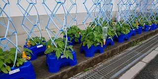〈2年生のアサガオも雨で元気に〉 〈校内案内学習のプレート 2年児童作〉