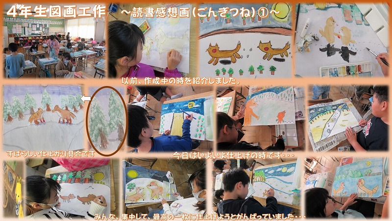 4年生図画工作(「ごんぎつね」<読書感想画完成>)