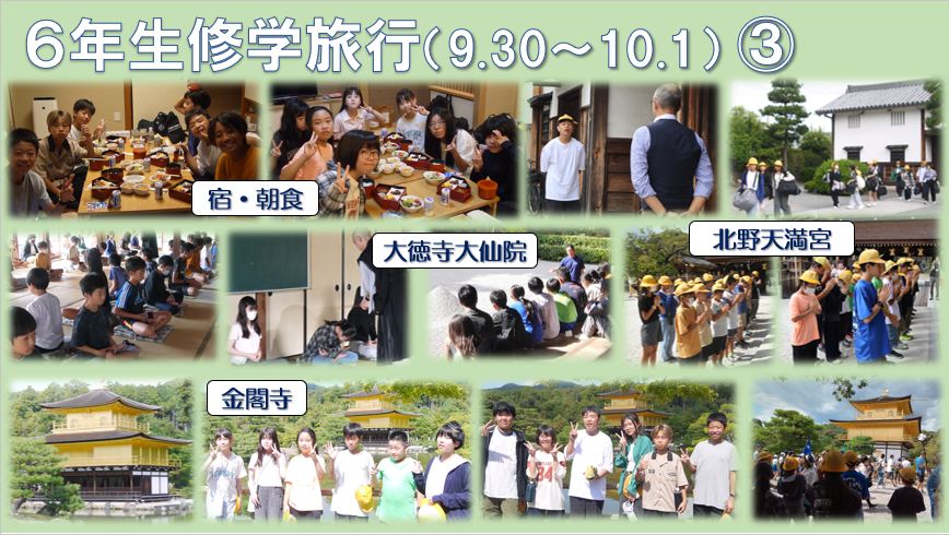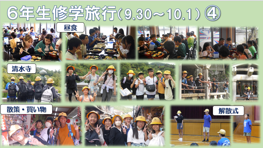 修学旅行2日目の様子です。2日間とも晴天に恵まれ、行程通り実施することができました。たくさんの場所で、見て、聞いて、体験をしました。忘れられない思い出がたくさんできましたね。