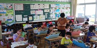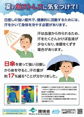 近年ヒートアイランド現象や地球温暖化により各地の平均気温の上昇傾向にあり、例年、7月下旬から8月にかけて、連日の35℃以上の猛暑日や夜間で25℃以上の熱帯夜により、屋内外問わず熱中症になる人が多発しています。本日、昼ごろには気温が31℃となり、『厳重警戒』レベルに達する予報です。 本校では養護教諭が逐次、熱中症計で暑さ指数を測定しています。測定結果に基づく警戒レベルに応じて、外遊びや外での体育の中止や運動の全面禁止など、指示徹底を図り、子どもたちの安全を守っていきます。 明日からしばらくはグズついた天気が続きそうですが、いざ、梅雨明けとなったら猛烈な暑さが待っていることが予想されます。予備の飲料水の持参や大きめの水筒の持参、暑さ対策グッズの着用、登下校時の日傘の活用など、ご家庭におきましても、ぜひとも「熱中症対策」を講じていただきますようお願いします。 下記左図は、環境省が示す「日傘の効果」です。汗をかきすぎることで血液が減り、体調不良を引き起こします。右図のように、日傘の有無で体温が大きく変わり、汗の量を適度に押さえることができます。遮光処理された日傘だと、直射日光を受けた場合と比較して、「-10℃」の効果があり、普通の雨傘でも「-8~9℃」の効果があるという研究データもあります。酷暑となる特別授業日には、ぜひ、日傘の使用をよろしくお願いします。 〈環境省が示す「日傘の効果」〉 〈日傘の有無で8~10℃も違う!〉 10時30分、熱中症「厳重警戒レベル」に達し、疲れ気味の子が多いという状況も鑑み、外遊びと外での学習を止めました。教室での授業は、エアコンのおかげで”快適”に進んでいます。4年2組では、算数「垂直・並行と四角形」の授業で、平行線の引き方学習に取り組んでいました。児童のノートを電子黒板に投影し、平行線の引き方を説明させていましたが、こうしたICT機器は子どもたちの学び合いを助ける上で大きな意味をもっていると改めて感じました。 授業が進んできたことで、引きテストに加え、体育や音楽等で実技テストも行われるようになりました。3年1組では、音楽「ドレミで歌おう」の学習で、鍵盤ハーモニカの実技テストに取り組んでいました。緊張感の中で演奏する経験は生活の様々な場面でも生きてくることですので、子どもたちには頑張ってほしいと思います。 〈大きな画面で説明はとてもわかりやすく・・・〉 〈説明を聞く他の児童の集中力も高まり・・・・〉 - 5年 算数の授業 - 〈昔から歌い継がれてきた「ドレミの歌」〉 〈一人ずつ緊張に負けないように・・・・〉 - 3年 音楽の授業 - 2年1組は、国語「夏がいっぱい」の学習で、夏に関わる言葉を選び、その言葉から想像できることをまとめる学習に取り組んでいました。同じ言葉でも一人ずつイメージすることは違います。どんな発表が飛び出すか楽しみです。 6年1組は、国語「情報と情報をつなげて伝えるとき」の学習で、「私たちにできること」をテーマに、問題点の洗い出し、提案のための資料の収集、文章の構成の手順と、他者に明確に伝えるための手立てを学んでいました。 〈夏をイメージすることばを書き出す・・・〉 〈ひとつの言葉からイメージできることをどうまとめるか?〉 - 2年 国語の授業 - 〈”提案”をいかに伝えるかを黒板に整理!〉 〈どんな資料を使い、どう文を構成しようか?〉 - 6年 国語の授業 - 感染拡大が全国に広がりつつあります。本県においても、感染者が連日20名を越え、あま市Webページによれば、昨日2名の感染者が確認されたとのことです。 つきましては、5年生キャンプの実施について市内12小学校で協議を続けてきましたが、こうした状況も鑑み、中止せざるを得ないと判断しました。詳細は、下記配付文書をご覧下さい。【本日配付の文書(対象:5年生)】 R2 07保護者案内【キャンプ中止】.pdf