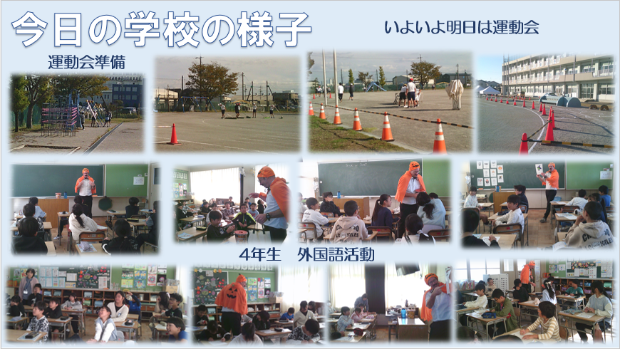 また、5時間目に6年生が運動会準備をしました。ありがとう。天気がよさそうなので、明日は運動会日和になりそうです。元気に登校して、運動会を成功させましょう。
