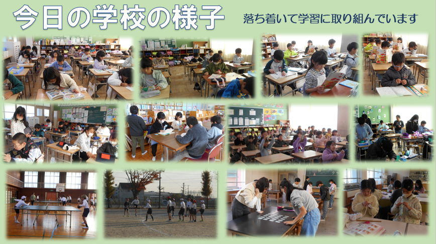 今日の学校の様子です。どの学級も落ち着いて授業をしている姿が見られました。また、6時間目はクラブでした。それぞれ楽しみながら取り組んでいました。