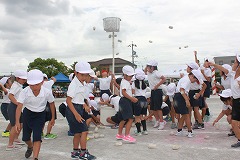 運動会の総練習を行いました。開閉会式は児童会役員が練習の成果を発揮してスムーズに行うことができました。どんな器具をいつ出して片付けるのか、放送のタイミングや声の大きさは良いかなど、それぞれの委員会の仕事を確認しました。低学年の「ダンシング玉入れ」や綱引き、紅白リレーなど、実際に競技をした時には、本番さながらの応援で勝敗の行方を見守りました。