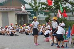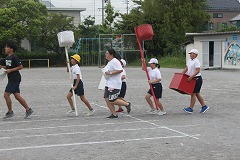 運動会の総練習を行いました。開閉会式は児童会役員が練習の成果を発揮してスムーズに行うことができました。どんな器具をいつ出して片付けるのか、放送のタイミングや声の大きさは良いかなど、それぞれの委員会の仕事を確認しました。低学年の「ダンシング玉入れ」や綱引き、紅白リレーなど、実際に競技をした時には、本番さながらの応援で勝敗の行方を見守りました。