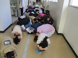 3月9日(木)にショート避難訓練を行いました。今回のねらいは、東日本大震災について知ることと、いつ、どこで、どんな時に災害が起きても、自分の命を守るシェイクアウトの姿勢を身に付けることです。