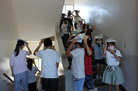 金曜日に雨天のためできなかった避難訓練を実施しました。
