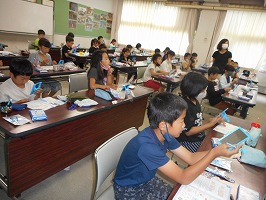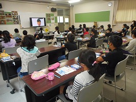 栄養教諭の講話の後、給食を食べていただき、そのあと、子どもたちの給食の様子を見ていただきました。