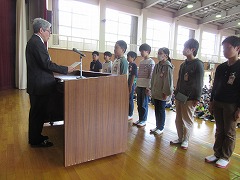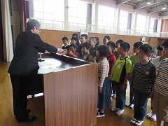 今日の国語は、楽しみにしていたお店やさんごっこの1回目です。文房具屋さんには、ハサミやのり、連絡帳などが、パン屋さんには、サンドイッチやカレーパン、ホットドックなどが、机いっぱいに並んでいます。先生の合図でお店屋さんが開店し、50円や100円で15分間、お買い物をしました。「いらっしゃいませ、おいしいケーキありますよ」とお客さんに声をかけたり、「50円で買えるものありますか」と聞かれ「これが50円です。」と答えたりお店の人とお客さんになりきって話すことができました。商品カードを作る時には、物の名前を書いて語彙を増やすことができ、片付ける時には、お店ごとに商品を分けて、レタスやトマトが野菜の仲間、タイやマグロが魚の仲間であることを認識でき、お店屋さんごっこを楽しみながら、多くのことを学ぶができました。