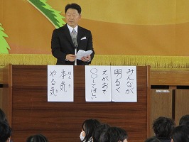今日は、3つのお話をします。一つ目は、WBCで日本が優勝したことです。さすがだなとたくさん感動しました。その中から二つのことを一緒に学びましょう。まずは、WBCが始まる前のダルビッシュ選手の言葉です。「優勝どうこうより、みんなが明るく笑顔で野球をしてほしい。」まさにチームワークの勝利でした。たとえ準優勝でも目的は達成でいたと思います。次に、日本選手の「本気度」です。本気の準備が理想的な結果をもたらしました。この本気はイチロー選手、ダルビッシュ選手、そして大谷選手へと引き継がれています。野球を私たちに当てはめると、「やる気をもって、みんなで頑張る。みんなが明るく、笑顔で、〇〇してほしい」。〇〇は、行事だけでなく、毎日の生活と学習です。次の学年でも頑張りましょう。