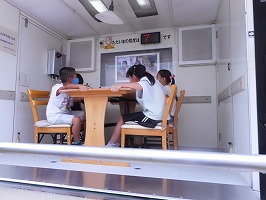 9月28日(水)に3、4年生対象の起震車体験が行われました。地震の揺れが体験できる「なまず号」に乗り、震度7相当の大きな揺れを実際に体験することができました。あま市の安全安心課の方からは、東日本大震災などで多くの人々が犠牲になったこと、実際に大きな地震が起きたら、家具なども動き、自分の身を守ることが大変になることなども教えていただき、とても貴重な体験をすることができました。