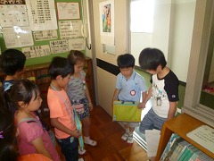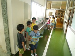 2年生が、学校探検に連れて行ってもらってから早くも1年が経ちました。今回は、1年生の手を引いての役割役を担いました。