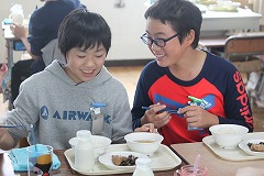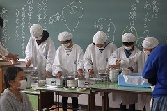 4時限目が終わったら、楽しい給食の時間です。給食当番さんも張り切って、やっていました。おうちの方に見ていただくことはあまりないので、子ども達はとても喜んでいました。