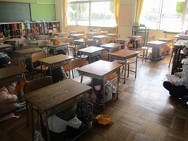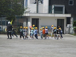 地震、そして火災が起きたとき、どのような行動をすればよいかを事前に確認した子どもたちは、とても真剣に取り組むことができました。自分の命だけでなく、周りの命も守る行動だという意識が伝わってきました。