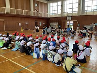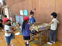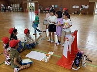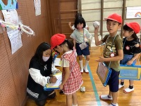 2年生が、1年生を招待して「おもちゃランド」を開きました。今日のために、びゅんびゅんカー、とことこ車、まとあてなど、一生懸命におもちゃを作ってきました