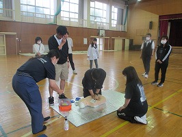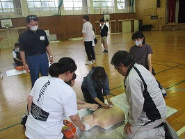 6月6日(火)に再来週から始まる水泳指導に備えて、海部東部消防署の方を講師にお迎えし、心肺蘇生法及び、AEDの使用方法の確認を行いました。万が一の場合に、冷静で確実な対応ができるように、職員がチームに分かれて、実際の手順や心臓マッサージの仕方などを体験しました。子どもたちの安全を第一に考え、水泳指導を行っていきたいと思います。