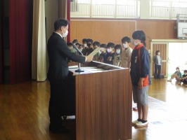 4月25日(月)に委員長・学級委員認証式が朝礼にて行われました。代表に相応しい立派な姿で認証状を校長先生から受け取りました。みんなからあたたかい拍手が送られ、「よりよい篠田小学校にするぞ」と思いを高めました。