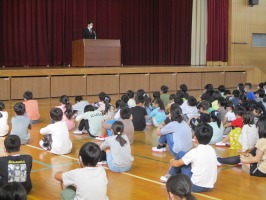 校長先生からは、篠田小学校のスローガン「かしこくやさしくたくましく」のお話がありました。みんなで元気に読み上げ、心に刻みました。今週の目標は、「自分から挨拶をしよう」。素敵な挨拶が聞こえる一週間が楽しみです。