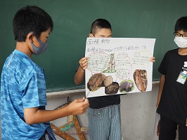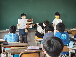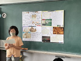 6年生の総合の授業では、世界の国調べを行い、発表を行いました。グループのメンバーで協力しながら、食べ物、言語、観光地、スポーツ、歴史などの様々な分野を分担して調べ学習を行いました。調べたことを画用紙にまとめ、クラスのみんなに分かりやすく伝えることで、さらに知識が深まったようでした。