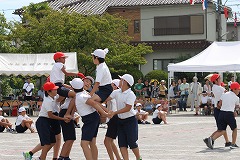 開会式での入場行進は、とても素晴らしかったです。児童代表の宣誓は、「これから、運動会を頑張ろう」という気持ちが伝わってきました。美和音頭では、菅原さん、宮地さんの太鼓に合わせて、全校で楽しく踊りました。徒競走では、ゴールまで自分の力を出しきり、走りました。低・中・高学年競技では、「玉入れ」「台風の目」「騎馬戦」を赤白それぞれのチームが協力して、頑張りました。ブラスバンド部の皆さんは、部員の心一つに素敵な演奏をしました。赤白対抗リレーは、応援の声も一段と大きくなり、各一丸となって応援しました、選手の皆さんも、チームの期待に応えようと、精一杯走りました。