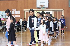 今日の国語は、楽しみにしていたお店やさんごっこの1回目です。文房具屋さんには、ハサミやのり、連絡帳などが、パン屋さんには、サンドイッチやカレーパン、ホットドックなどが、机いっぱいに並んでいます。先生の合図でお店屋さんが開店し、50円や100円で15分間、お買い物をしました。「いらっしゃいませ、おいしいケーキありますよ」とお客さんに声をかけたり、「50円で買えるものありますか」と聞かれ「これが50円です。」と答えたりお店の人とお客さんになりきって話すことができました。商品カードを作る時には、物の名前を書いて語彙を増やすことができ、片付ける時には、お店ごとに商品を分けて、レタスやトマトが野菜の仲間、タイやマグロが魚の仲間であることを認識でき、お店屋さんごっこを楽しみながら、多くのことを学ぶができました。
