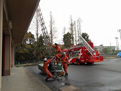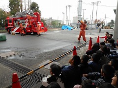 11月22日、4年生が消防署見学へ行きました。天気が心配でしたが、雨が降ることもなく見学をすることができました。クラスごとに、施設見学と消防体験に分かれて学習をしました。