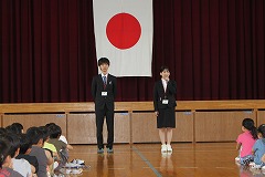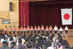 今日の国語は、楽しみにしていたお店やさんごっこの1回目です。文房具屋さんには、ハサミやのり、連絡帳などが、パン屋さんには、サンドイッチやカレーパン、ホットドックなどが、机いっぱいに並んでいます。先生の合図でお店屋さんが開店し、50円や100円で15分間、お買い物をしました。「いらっしゃいませ、おいしいケーキありますよ」とお客さんに声をかけたり、「50円で買えるものありますか」と聞かれ「これが50円です。」と答えたりお店の人とお客さんになりきって話すことができました。商品カードを作る時には、物の名前を書いて語彙を増やすことができ、片付ける時には、お店ごとに商品を分けて、レタスやトマトが野菜の仲間、タイやマグロが魚の仲間であることを認識でき、お店屋さんごっこを楽しみながら、多くのことを学ぶができました。