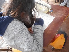 給食の残さいがなくなるように、自分たちが出来ることをワークシートに書き込んでいきました。「好き嫌いをしずに食べる」「食べ物に感謝して食べる」など自分たちが出来ることを考える事ができました。