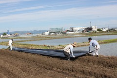 今週金曜日のサツマイモの苗植えに向けて、学校畑では準備が行われました。