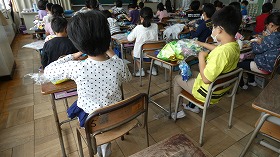 栄養教諭の講話の後、給食を食べていただき、そのあと、子どもたちの給食の様子を見ていただきました。