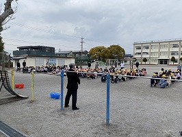 本日、昼休みが終わる頃を見計らって抜き打ちの避難訓練を行いました。児童にも職員にも伝えず、実践を想定したものです。