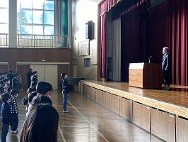 今日から後期がスタートします。はじめに、学校の新しいリーダーとなる後期児童会役員と学級委員の認証、そして、読書感想文コンクールの表彰を行いました。次に、後期のスタートに際し、言葉について話をしました。学校では、たくさんの人が一緒に生活・学習をします。だからこそ楽しいこともあるけれど、思い通りにいかなくて嫌な思いをすることもあります。けれども、人を傷つける言葉で嫌な空気をつくってしまうより、相手が「うれしい」気持ちになるような言葉を使うことを心がけ、よりよい学級・学校にしていきましょうと話しました。最後に、全校で元気よく校歌を歌い、後期がスタートしました。