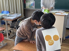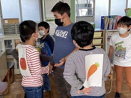 言葉の使い方に気を付けながら、上手に質問し、背中のものを答えることができました。