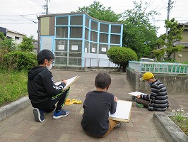 図工の授業では、「わたしの大切な風景」という単元で、篠田小学校の思い出深い場所を風景画にしています。どの児童も、お気に入りの場所の遠近感や立体感を風景画に表すことができるように集中して授業に取り組んでいます。