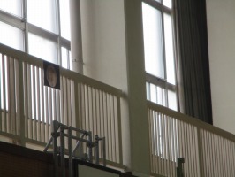 前回、スーパームーンを見つけましたね。(多くの子どもが前の場所を指さしました)。今日は実は2つ目のスーパームーンがあるのです。(探していなかった子どもも探し始める。体育館のギャラリーの柵にスーパームーンが・・・「あ、あった!」と口々に言う。)そうです。見つける気になれば見つかるのです。