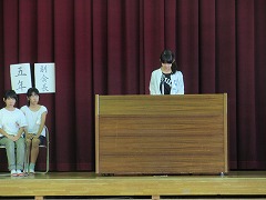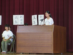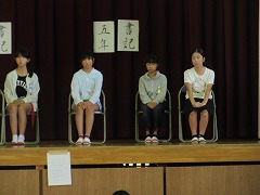 初めに、立候補者による立ち会い演説がありました。それぞれの立候補者が、「挨拶が元気よくできる学校にしたい」「お楽しみ集会など楽しいことを考えていきたい」など児童会に当選したら、やってみたいことについて、話しました。聞いている児童のみなさんは、演説の言葉に真剣に耳を傾けていました。