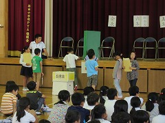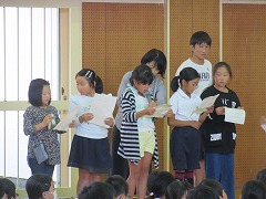 10月4日(水)に3年から6年までの児童が体育館に入り、後期児童会役員選挙を行いました。