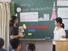 7月2日5時限目に、桜小学校の遠藤孝先生をお迎えして、4年2組で算数科の研究授業を行いました。単元は「何倍でしょう」でした。