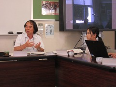 事後に研究協議会では、遠藤先生から、研究授業の内容だけでなく、用意していただいた資料をもとに、いろいろ教えていただきながら、研修を深めました。