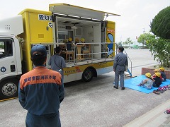 2時限目、3時限目には、3年生4年生が起震車体験をしました。体験の最初に、市役所の方から、代休の日の朝に起こった地震のことや今日の体験の目的や注意についての話がありました。