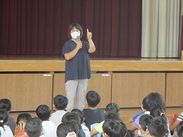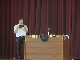 9月1日(木)に朝礼が行われました。校長先生のお話の中で、子ども達がびっくりしたことが2つありました。