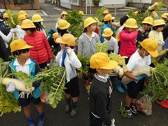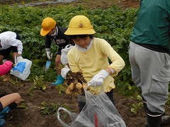農業委員さんにお手伝いいただき、大小さまざまな、たくさんのジャガイモを収穫することができました。また、とっても大きい大根も収穫させていただき、両手に持ちきれないほどの素敵なお土産となりました。