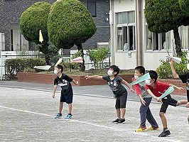 風が強く、まっすぐ飛ばない場面もありましたが、力加減を考えながら、楽しく活動できました。