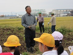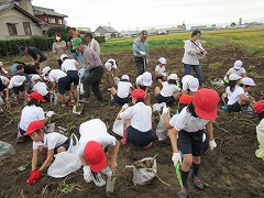 9日(火)に農業委員さんがサツマイモのつるを切り、マルチをはずしてくださり、当日の朝には、児童の皆さんが掘りやすいように準備をしてくださいました。ありがとうございました。